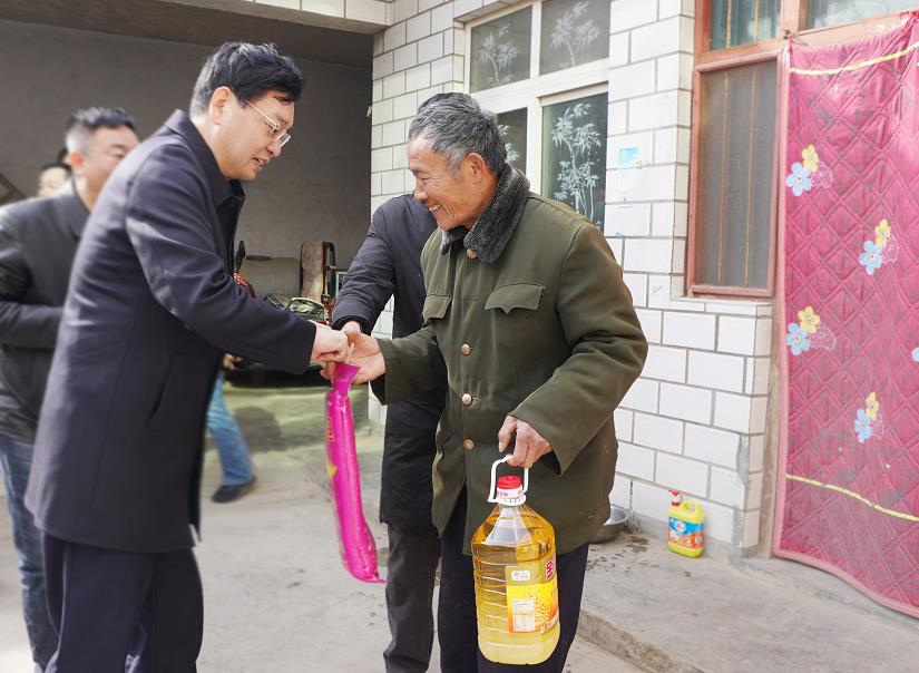 春節(jié)將至,為鞏固脫貧攻堅(jiān)成果,2月1日上午,河南航投黨委書(shū)記、董事長(zhǎng)張明超帶隊(duì)前往湯陰縣菜園鎮(zhèn)后皇甫村慰問(wèn),公司黨委副書(shū)記、工會(huì)主席安建民,部分中層管理人員及結(jié)對(duì)幫扶人員一同參加。