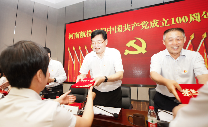 6月28日上午,在中國共產黨成立100周年之際,河南航投隆重召開慶祝中國共產黨成立100周年大會,回顧百年黨史、傳承革命精神、汲取智慧力量,進一步總結公司過往奮斗的經驗成果,表揚先進、激勵共進、再添干勁,號召廣大干部員工昂首奮進新征程,勇創“空中絲綢之路”建設新局面。公司黨委書記、董事長張明超為廣大黨員干部講授黨課,總經理、黨委副書記、副董事長劉建葆通報和宣讀了表彰決定,會議由公司黨委副書記、工會主席安建民主持,公司領導班子成員為先進代表頒獎。中層管理人員、先進基層黨組織代表、優秀共產黨員、優秀黨務工作者共計130余人參加了會議。三名受表彰代表作了交流發言。