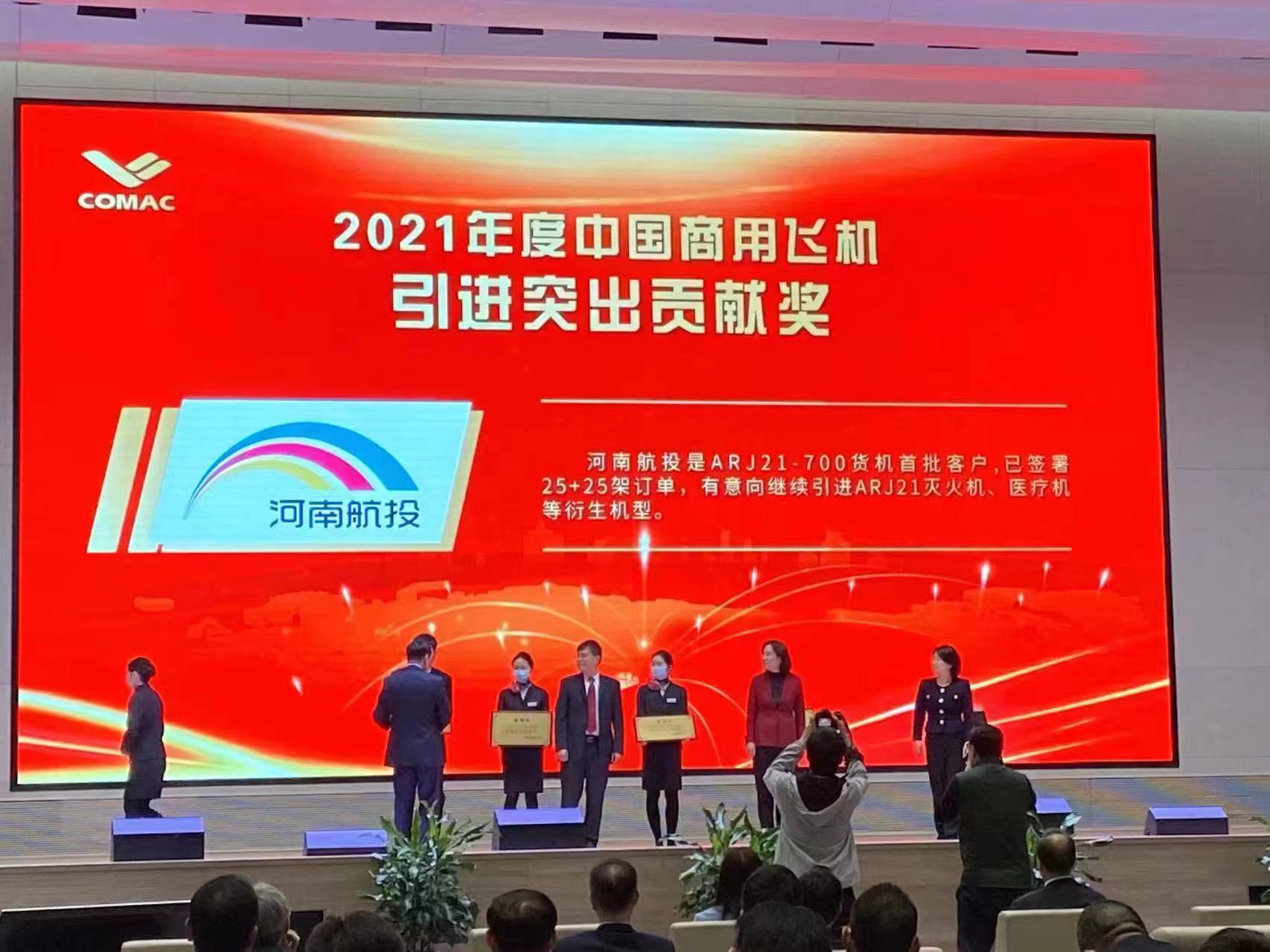 10月26日,中國(guó)商飛2022年度客戶大會(huì)在嘉興召開(kāi)。會(huì)上頒發(fā)了第一屆中國(guó)商用飛機(jī)“翱翔獎(jiǎng)”。由中國(guó)商飛黨委書(shū)記、董事長(zhǎng)賀東風(fēng)為河南航投頒發(fā)“翱翔獎(jiǎng)—— 2021年度中國(guó)商用飛機(jī)引進(jìn)突出貢獻(xiàn)獎(jiǎng)”,這是中國(guó)商飛首次將國(guó)產(chǎn)商用飛機(jī)相關(guān)獎(jiǎng)項(xiàng)授予河南本土企業(yè),對(duì)國(guó)產(chǎn)貨機(jī)進(jìn)一步拓展市場(chǎng)具有重要意義。
