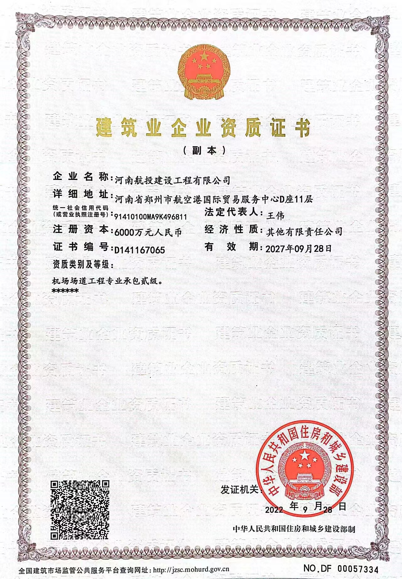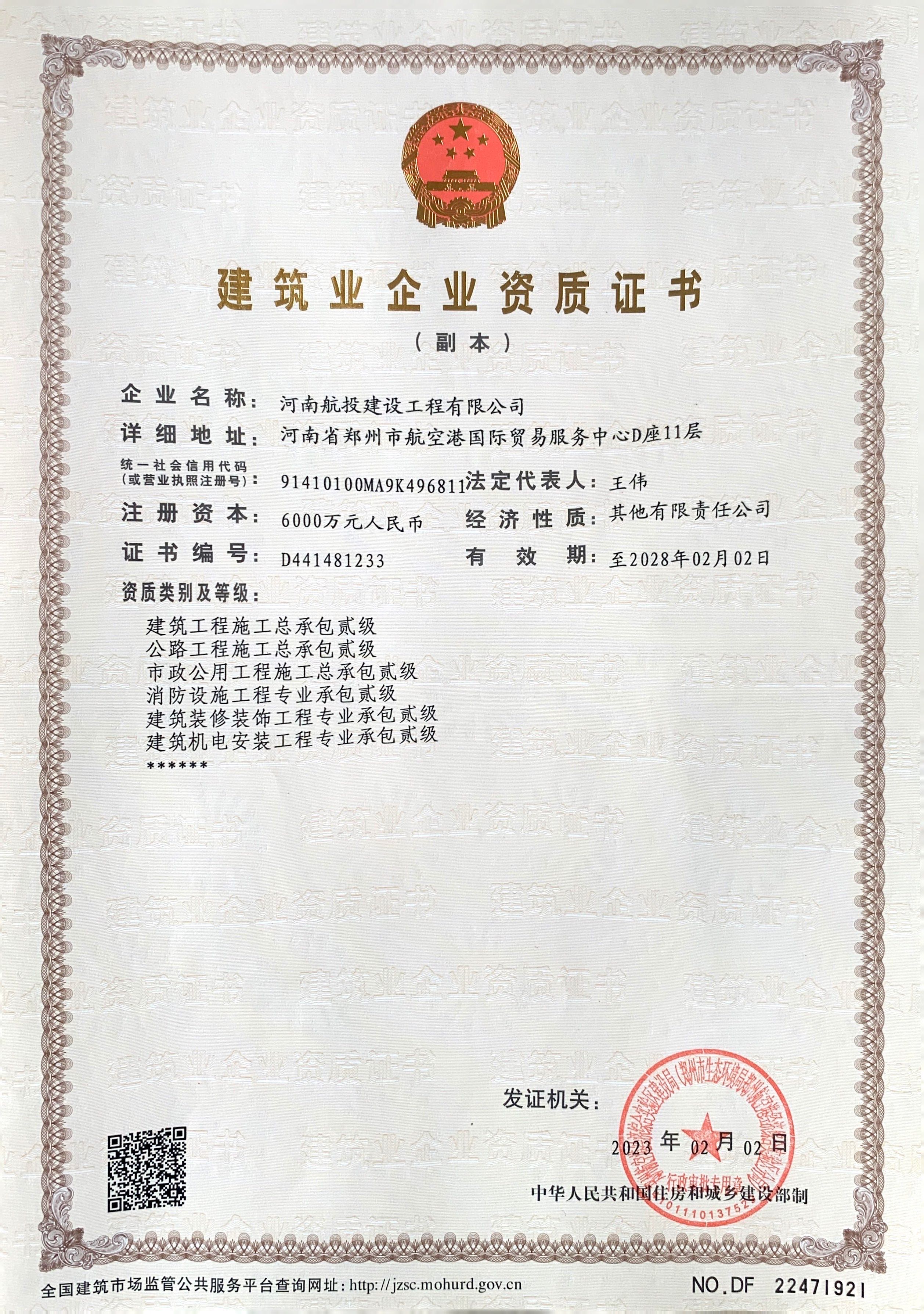 2月3日,河南航投建設工程有限公司(以下簡稱航投建工)取得施工總承包及多項專業資質,全面滿足建筑業市場準入及承攬機場建設、民用、市政及公路等相關業務條件,成為河南首家民航機場專業化國有施工企業。