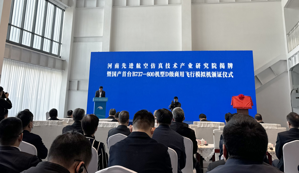 11月26日,河南先進(jìn)航空仿真技術(shù)產(chǎn)業(yè)研究院揭牌暨國產(chǎn)首臺(tái)B737-800機(jī)型D級商用飛行模擬機(jī)頒證儀式在河南航投航空培訓(xùn)中心舉行。省委書記樓陽生出席并講話。樓陽生為河南先進(jìn)航空仿真技術(shù)產(chǎn)業(yè)研究院揭牌。中國工程院院士趙沁平受聘擔(dān)任研究院專家技術(shù)委員會(huì)主任。中國商用飛機(jī)有限責(zé)任公司黨委書記、董事長賀東風(fēng),省領(lǐng)導(dǎo)孫守剛、陳星、安偉、劉尚進(jìn)出席。