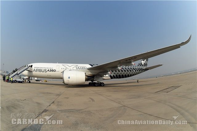 11月2日一架身披碳纖維特殊涂裝的空客A350-900測試飛機飛抵北京首都國際機場,并在11月3日進行展示。A350是目前世界上最先進的遠程寬體飛機。北京是空客A350中國巡演活動的第三站,之前這架生產序列號為MSN2的測試飛機已經訪問了珠海和???,接下來它還將飛抵上海、廣州和成都進行靜態和飛行展示。
